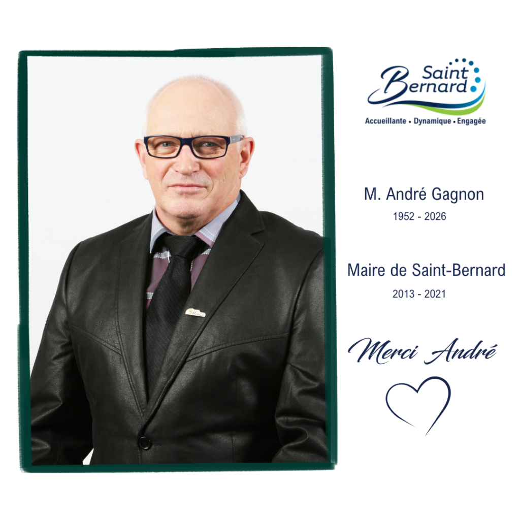 Saint-Bernard, le 31 mars 2026 — C’est avec regret que la Municipalité de Saint-Bernard a appris le décès de Monsieur André Gagnon, un homme qui a marqué notre municipalité par son engagement et son dévouement envers sa communauté.