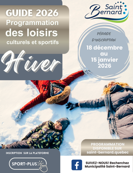 Le guide 2026 de la programmaiton de loisirs sportifs et culturels pour la session d’hiver 2026 est disponible en ligne.