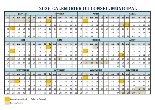 Les séances débuteront à 20 h et se tiendront dans la salle du conseil au Pavillon des loisirs, située au 1512 rue Saint-Georges à Saint-Bernard.